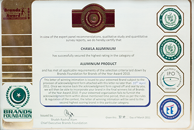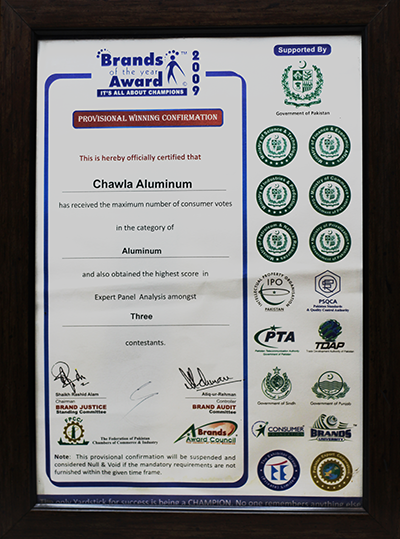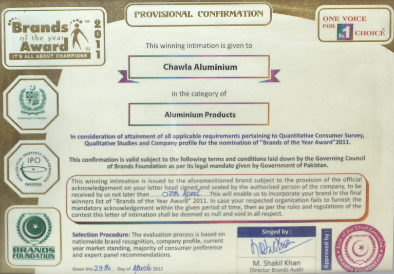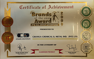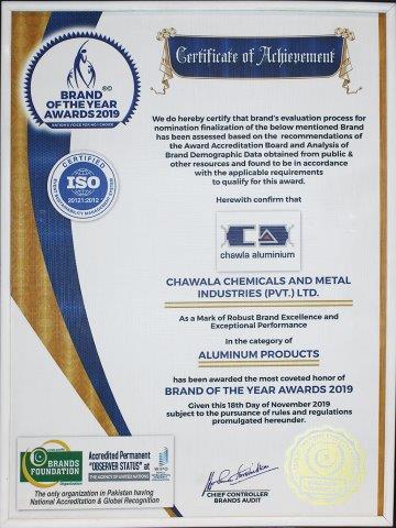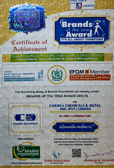 Awarded for Providing Best Aluminium Product in 2020 by Brand Foundation.