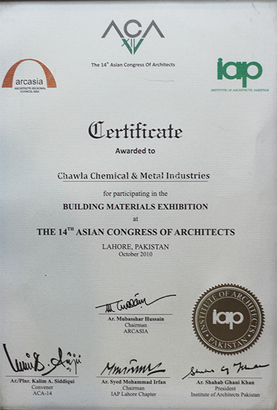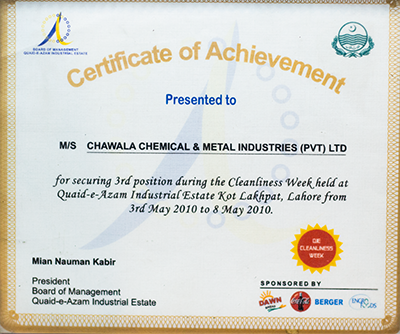 Got Awarded for Achieving 3rd place in cleaness week by Quaid-e-Azam Industrial Estate in 2010.