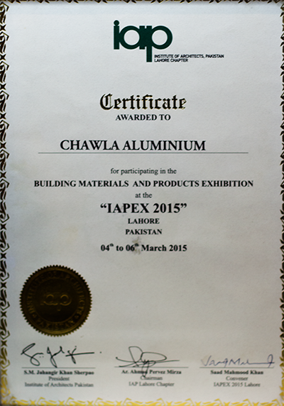 Got Appreciation from Institute for Architects of Pakistan for Participation and providing Services in 2012.